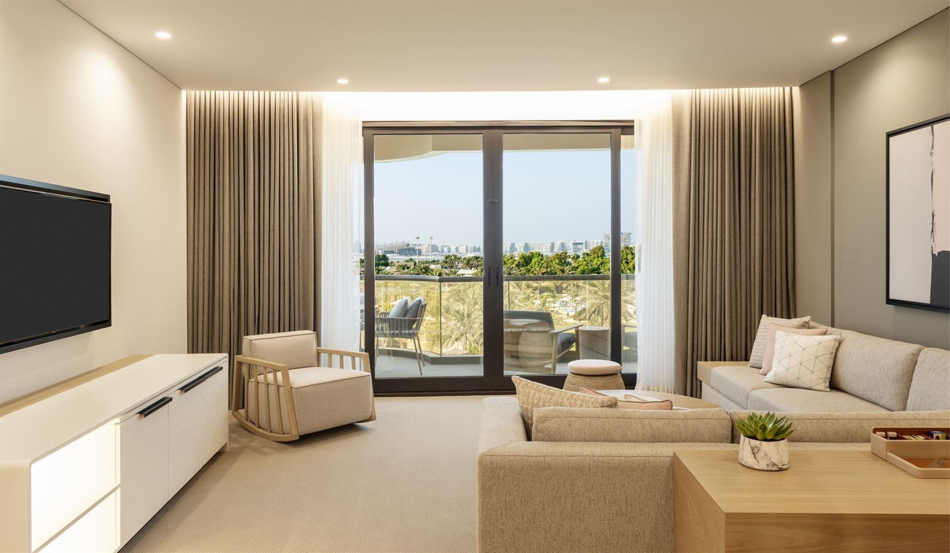 Номер: 73,5 кв. м, у вежі (Tower Building), двокімнатний, спальня, вітальня, міжкімнатні двері, ванна кімната, більшість номерів з балконами, вид на море.