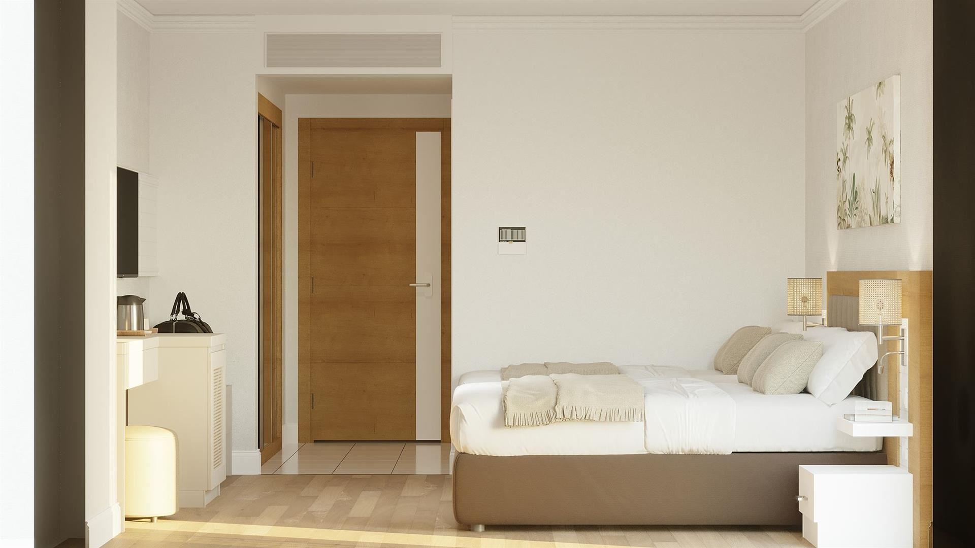 Номер: 26-28 м², спальня, двоспальне ліжко і 1 односпальне, ванна кімната, балкон, краєвид на басейн.