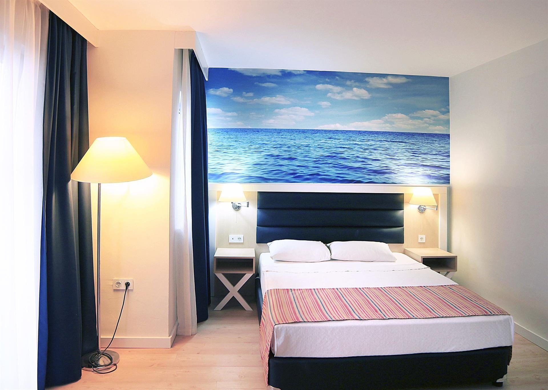 Номер: 20-24 м², спальня, двоспальне ліжко + 1 односпальне, ванна кімната, французький балкон, краєвид на море; максимальне розміщення — 2+1 чол.