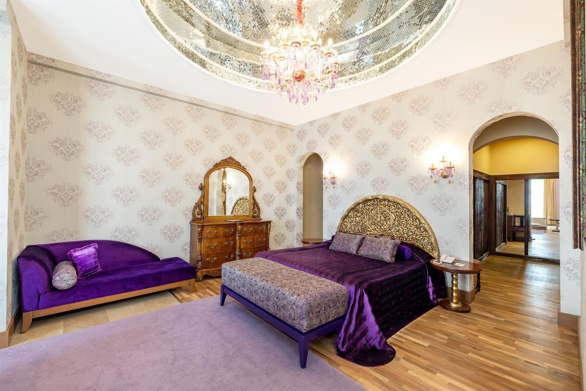 Номер: 500 м², розташований в головній будівлі. Номер складається з просторого коридору з дзеркальною вбиральнею, їдальні з обіднім столом на 12 осіб, кухні, робочого кабінету, вітальні з м'якими меблями і ТВ-салоном, трьох спалень з ванними кімнатами (одна з них з джакузі, сауною, турецькою лазнею, кімнатою для масажу, гардеробною). Тераса (180 м²) з джакузі, шезлонгами, парасолькою і літніми меблями, максимальне розміщення — 7 чол.