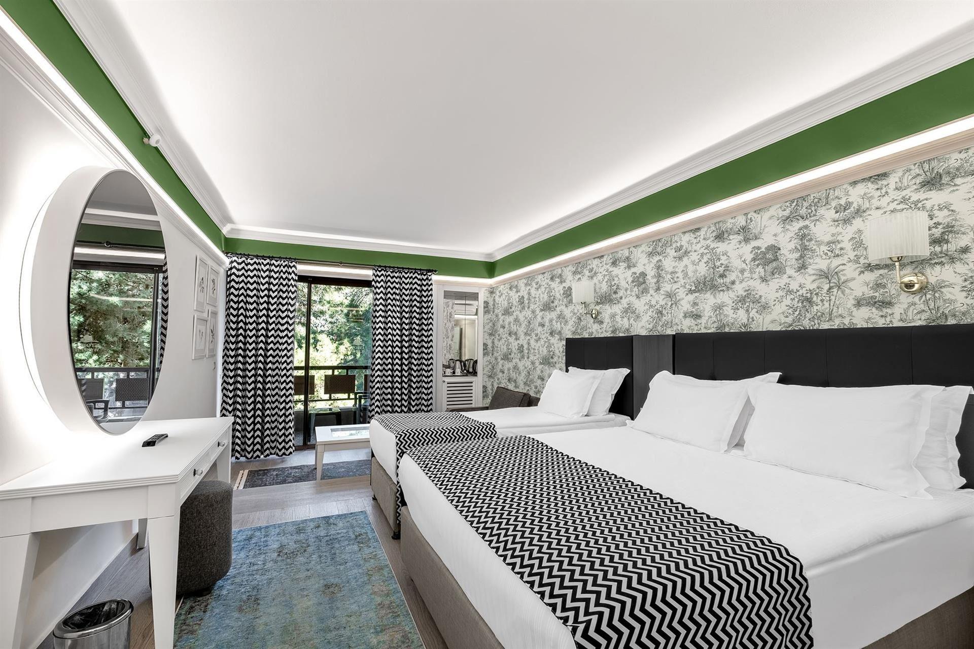 Номер: 71 м², в головній будівлі, 2-кімнатні номери з 1 двоспальним і 2 односпальними ліжками, міжкімнатні двері, м'які меблі, 2 кондиціонери, 2 санвузли, джакузі, 2 душові кабіни; балкон, краєвид на околиці / море, максимальне розміщення — 5+1 чол.