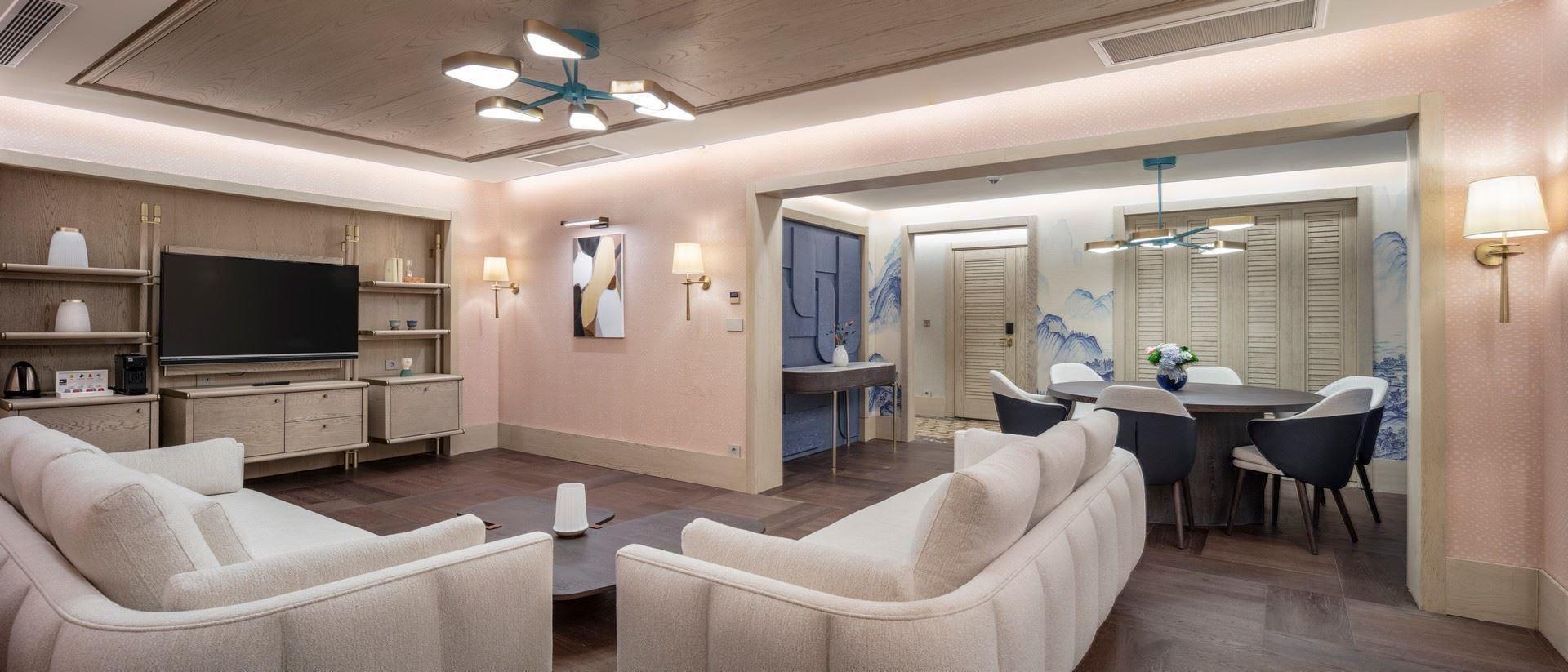 Номер: 76 м², в корпусах Lake House на 1 поверсі, номер складається з 2 окремих спалень, об'єднаних спільним коридором з дверима, двоспальне ліжко і 2 односпальні, прямий вихід в басейн, 2 ванні кімнати, тераса.